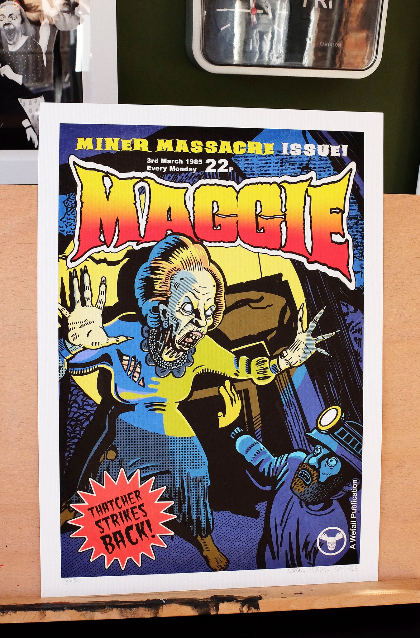 A3 giclée print measuring 297mm × 420mm printed with dye based inks on textured 210gsm Hahnemühle Albrecht Durer paper meaning it will not fade or oxidise. A limited run of 250 prints (photos shows various # but the numbers will be incremental as they sell). Will be signed on the back too.